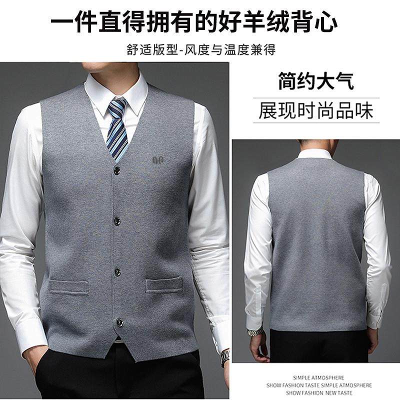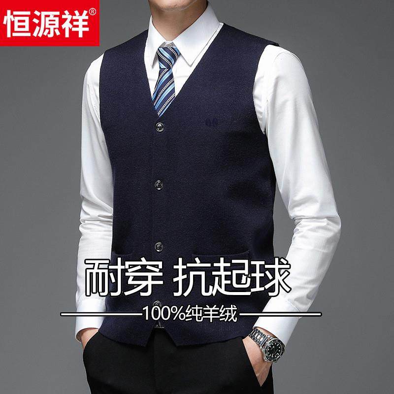 恒源祥山羊绒男士背心春秋季薄款马甲羊毛坎肩毛衣中老年开衫V领