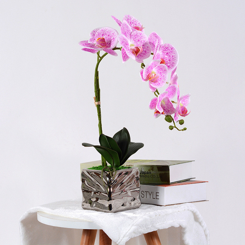 蝴蝶兰仿真花套装 创意电镀装饰摆设 陶瓷工艺假花盆栽 厂家批发