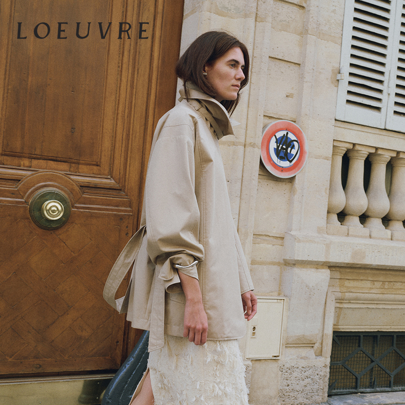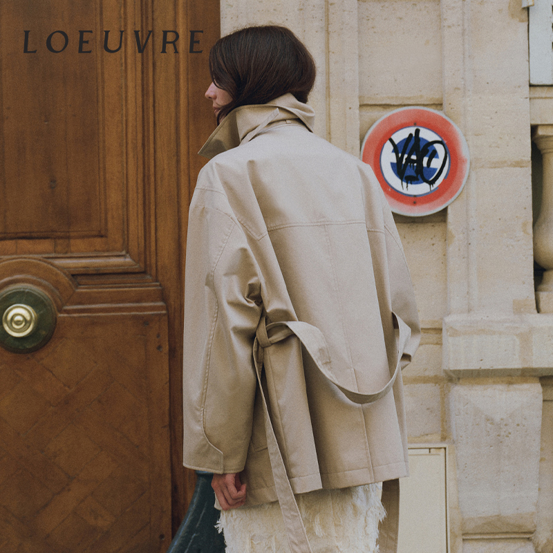 loeuvre高领翻折领工装夹克女双层门襟宽松短款风衣外套 SW5AR305