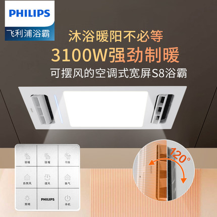 飞利浦照明多功能宽屏浴霸暖风吹风换气双电机超大风量即开即热