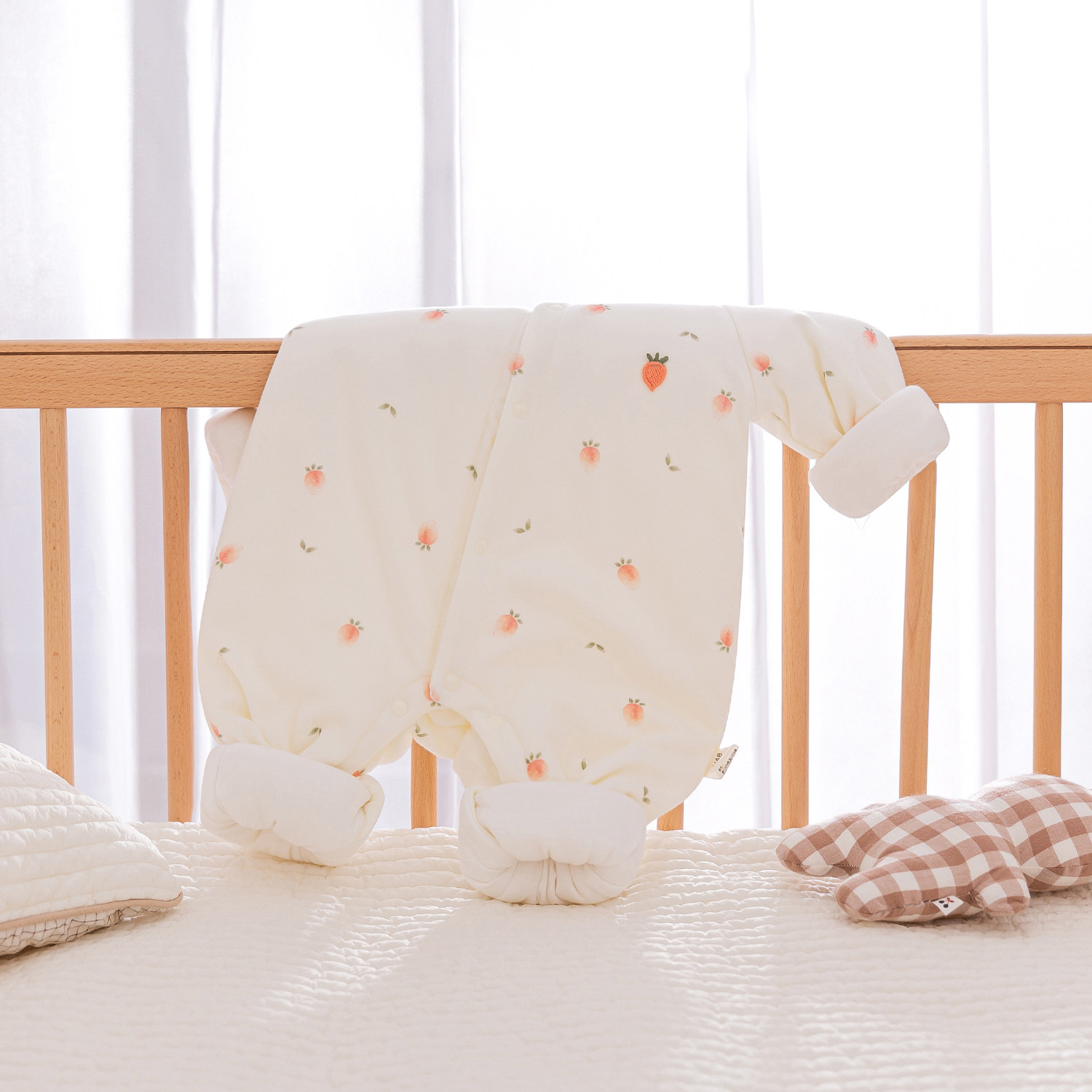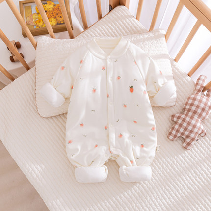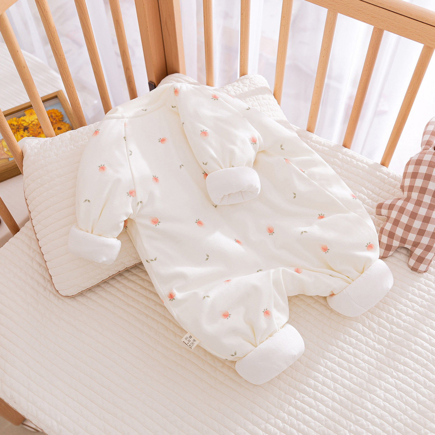 婴儿秋冬季夹棉连体衣男女宝宝纯棉哈衣爬服加厚棉衣棉服家居内穿