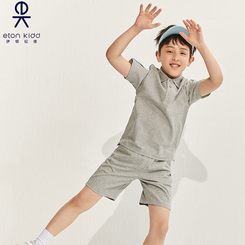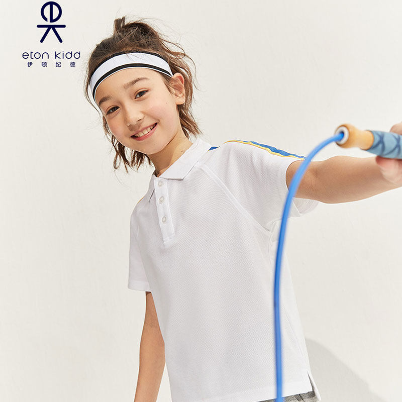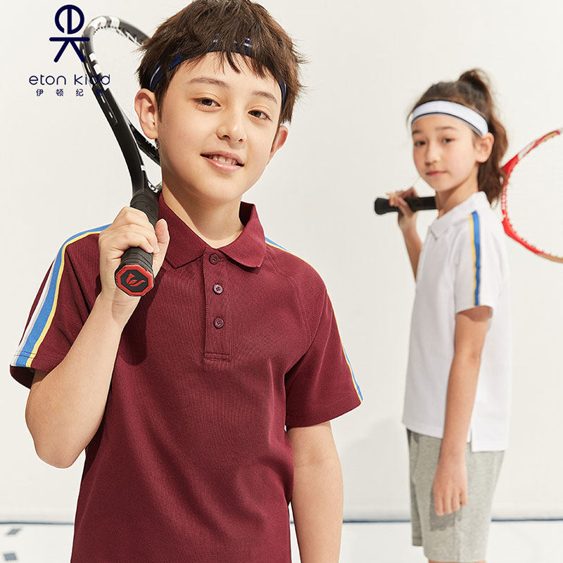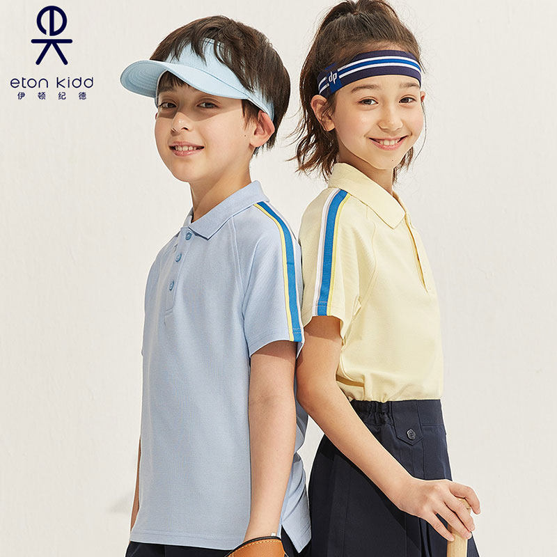伊顿纪德夏男女童校服珠地网眼撞色织带短袖T恤班服POLO衫22T001