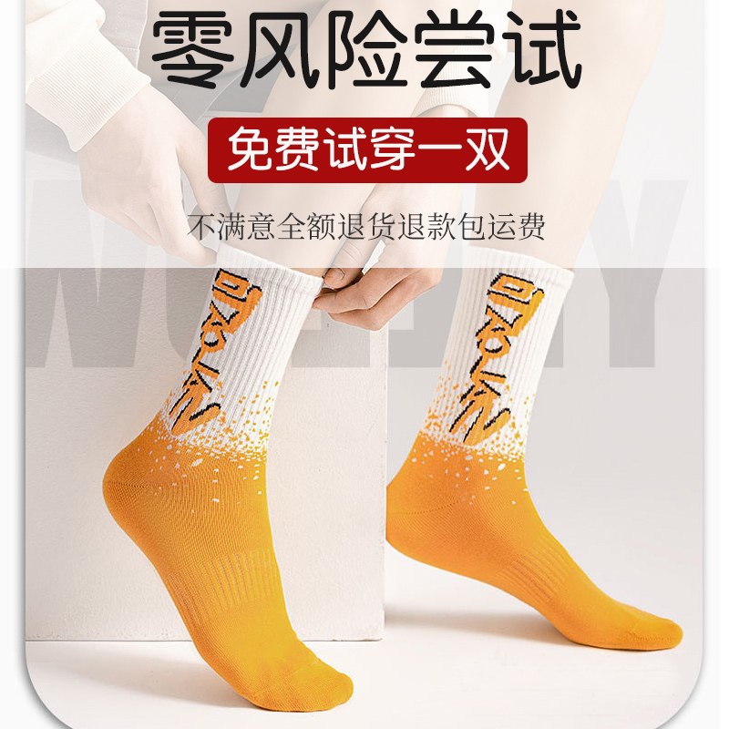 长袜子男士纯棉袜中筒秋冬季防臭青少年男孩男袜运动男款篮球长筒
