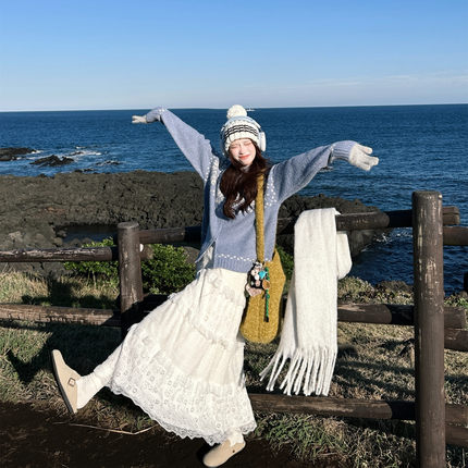 少女感白色小个子蛋糕裙蕾丝百搭显瘦2024秋冬新款ins韩版半身裙