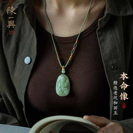 一兴原创和田玉蛇年本命像吊坠女生肖菩萨锁骨链好运项链属相挂饰
