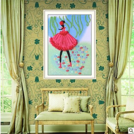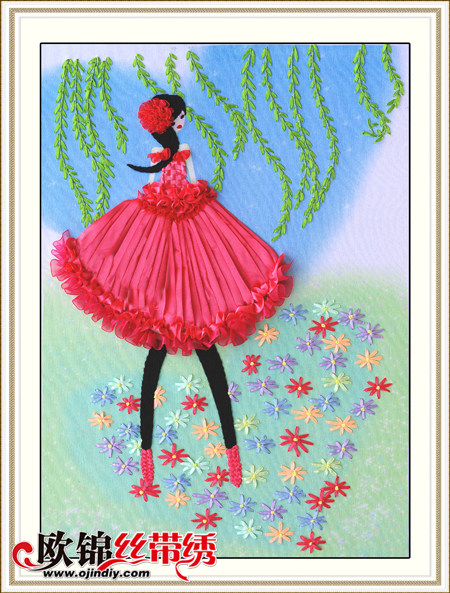 正品丝带绣欧式彩印客厅卧室挂画 迎风摆动 3D印花人物非十字绣