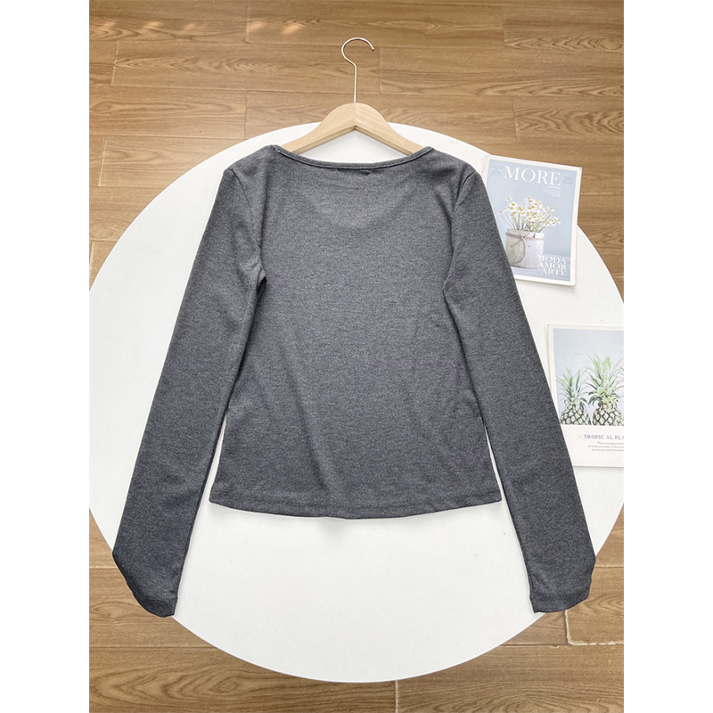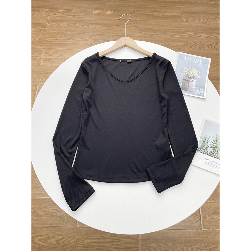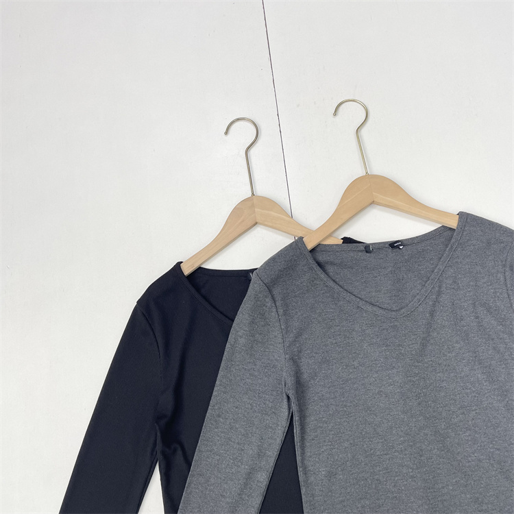 E2基础款罗纹~韩单25秋季新款V领T恤衫长袖休闲款百搭外穿打底款