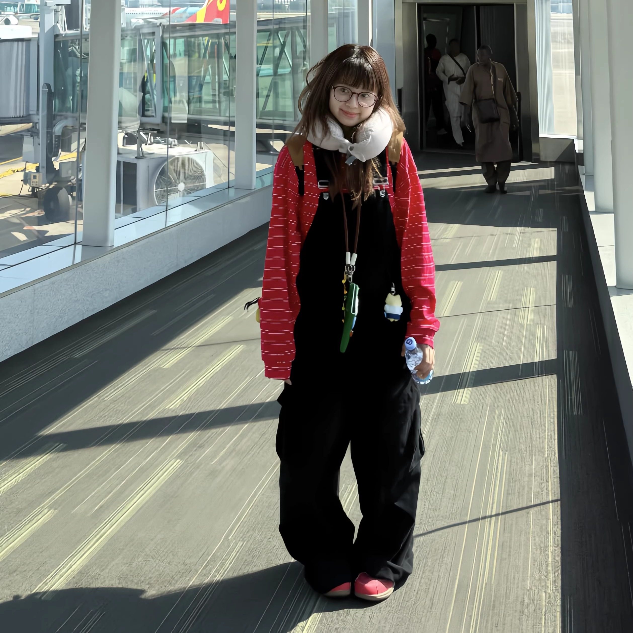 期望Studio美式慵懒风红色条纹长袖T恤男女宽松休闲百搭套头卫衣