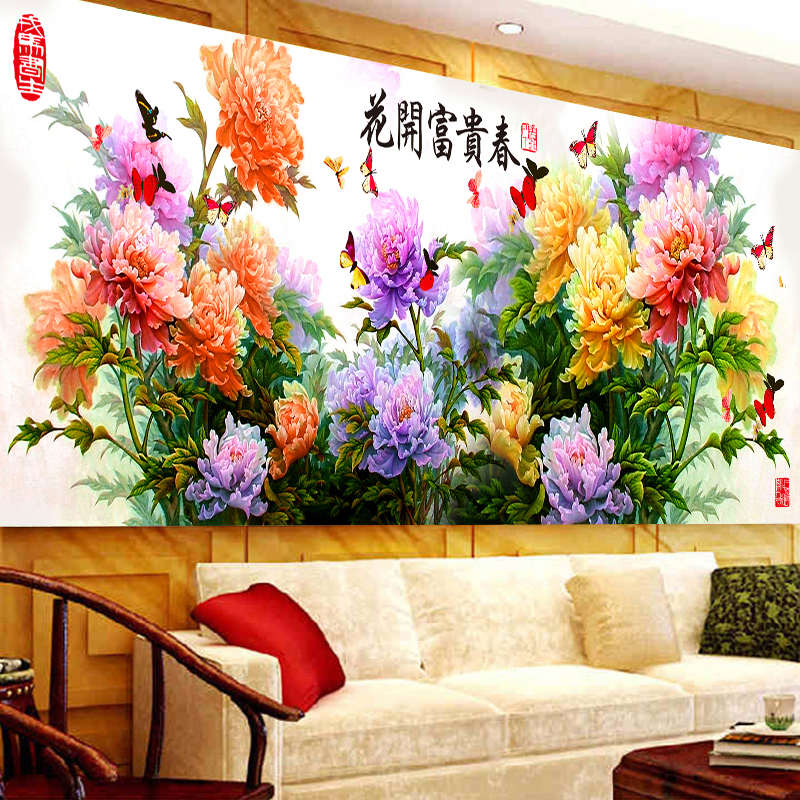 2025满钻钻石画花开富贵春5d贴砖石十字绣2024年新款大幅客厅风景