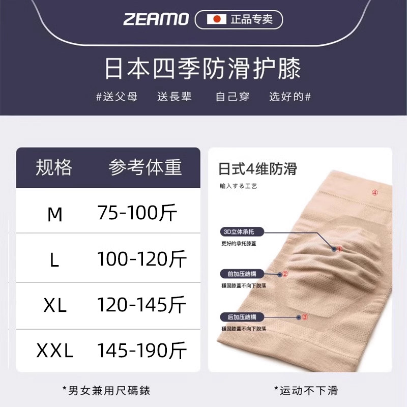 日本防滑护膝盖女士关节保暖老寒腿中老年人秋冬防寒不下滑护膝套