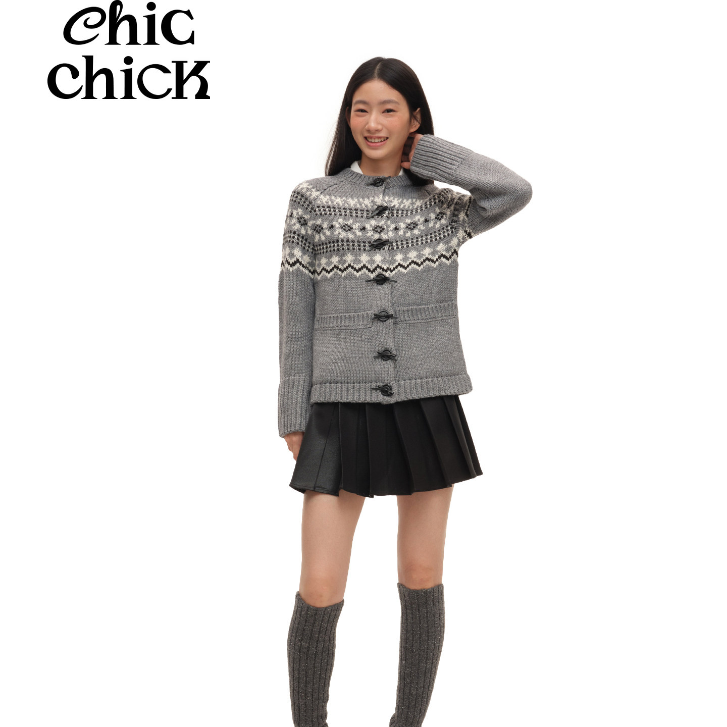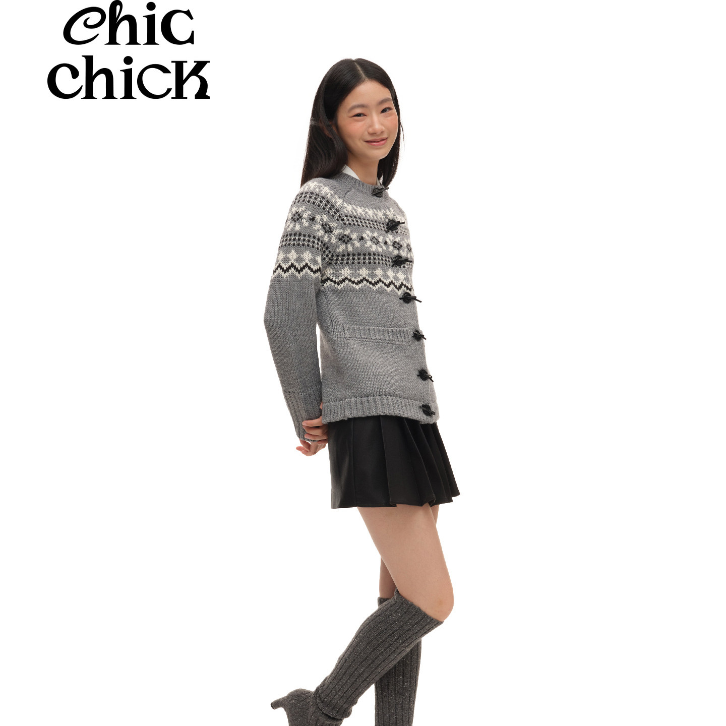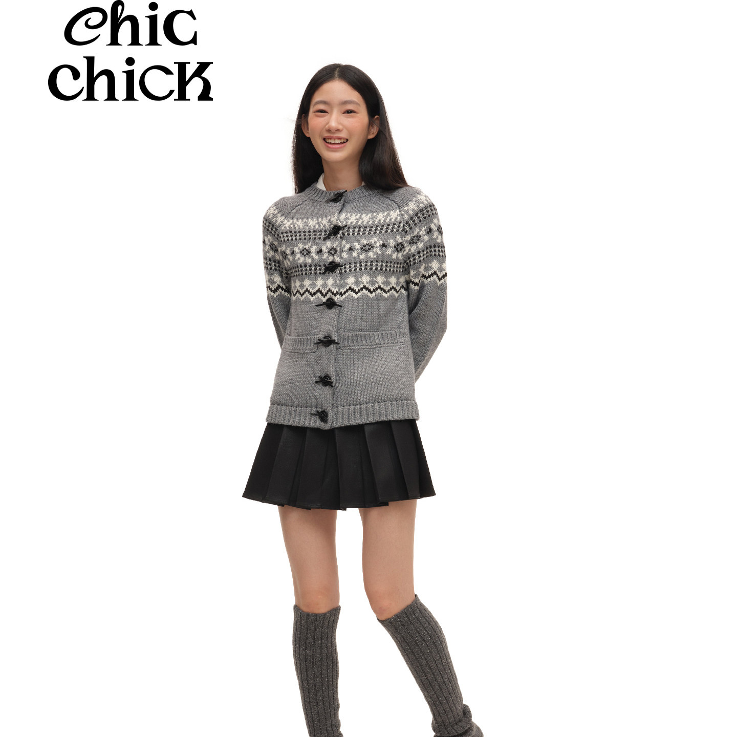ChicChick时髦小鸡 日漫女高 黑色定制光感涂层秋冬西装百褶裙裤
