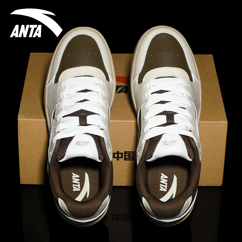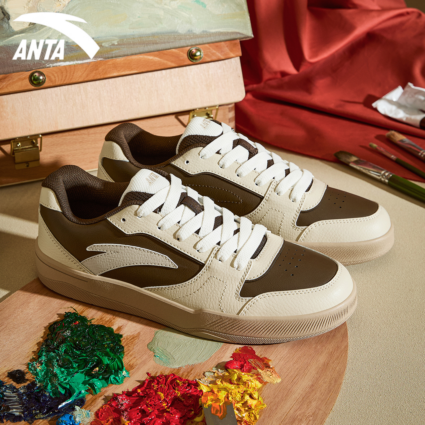 安踏男鞋休闲复古板鞋秋季2025新款皮面舒适撞色低帮百搭运动鞋男