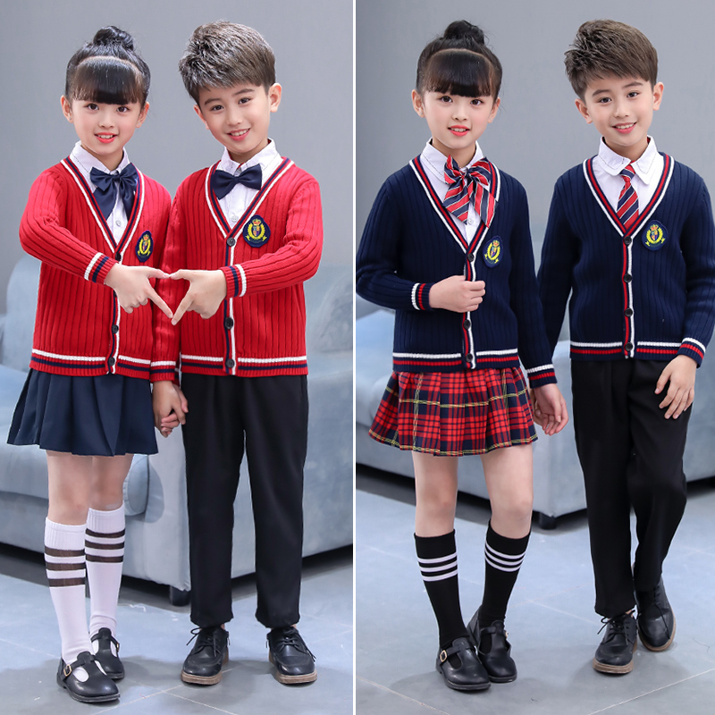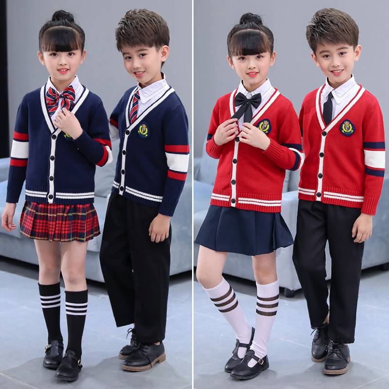 儿童针织开衫背心新款男女童班服毛衣马甲学院风校服园服纯棉外套