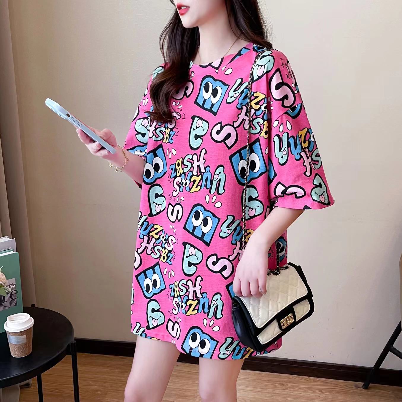 2024夏季新款短欧货卡通印花大码短袖T恤女韩版宽松百搭上衣女潮
