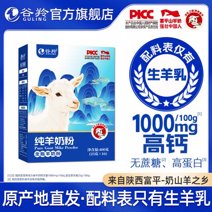 谷羚纯羊奶粉 美丽富平全家中老年无蔗糖全脂纯羊奶粉400克旗舰店