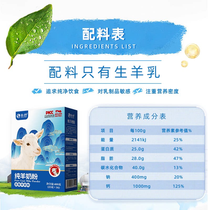 谷羚全脂纯羊奶粉官方旗舰店400g
