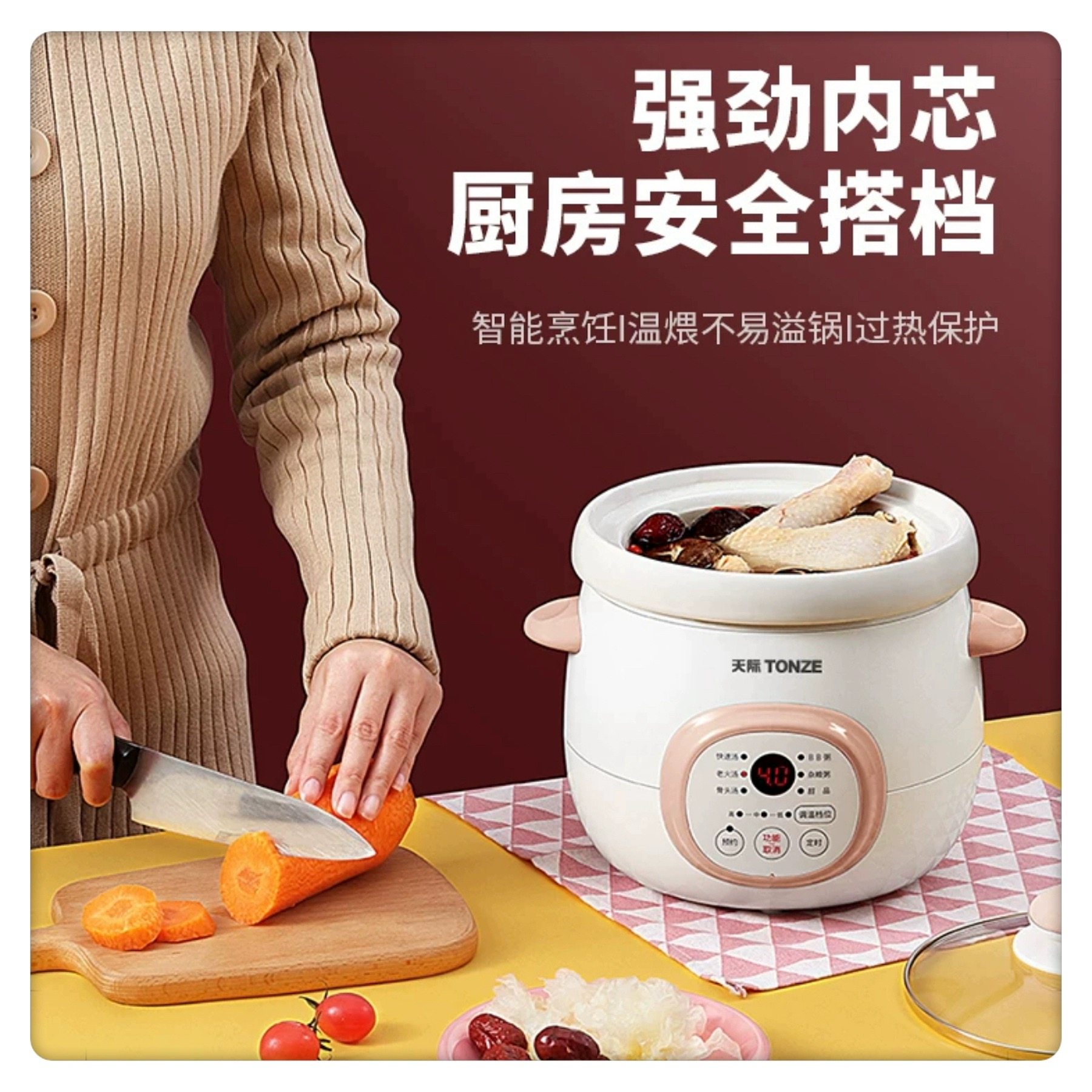 天际陶瓷电炖锅全自动煮粥煲汤养生锅迷你小煲宝宝BB辅食锅1.5升