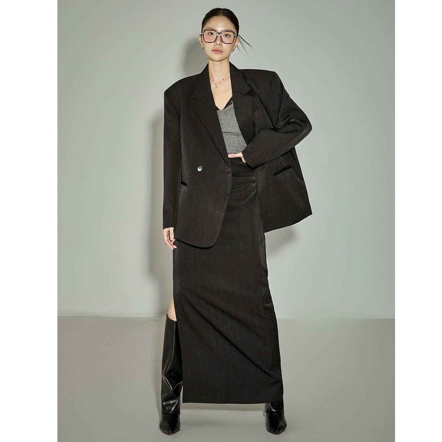 DINT韩国正品代购直邮 双排扣两侧袋肩垫西领宽松外套J2864安娜杨