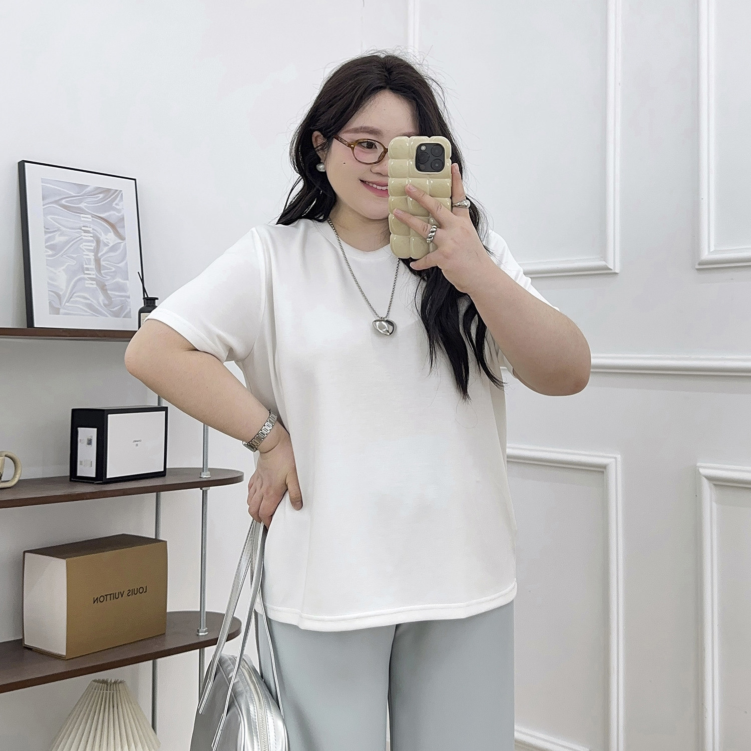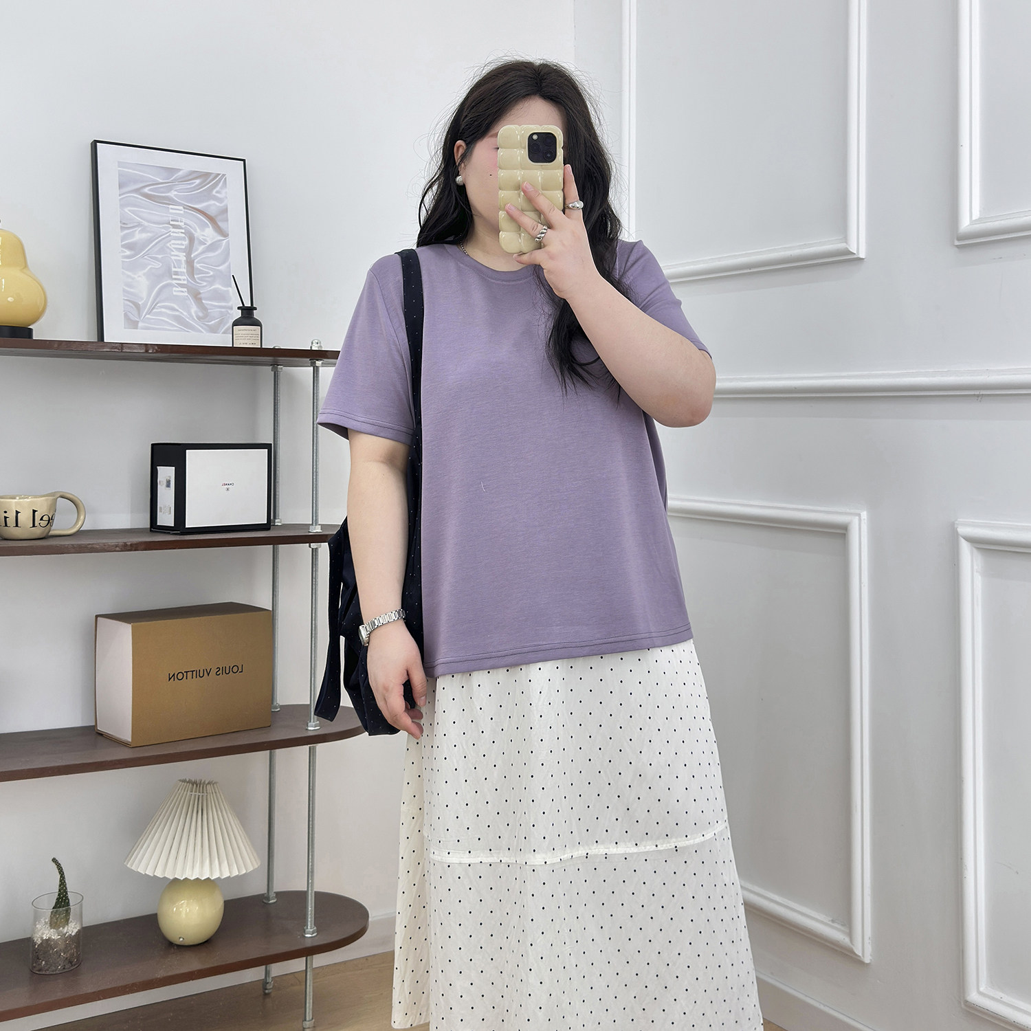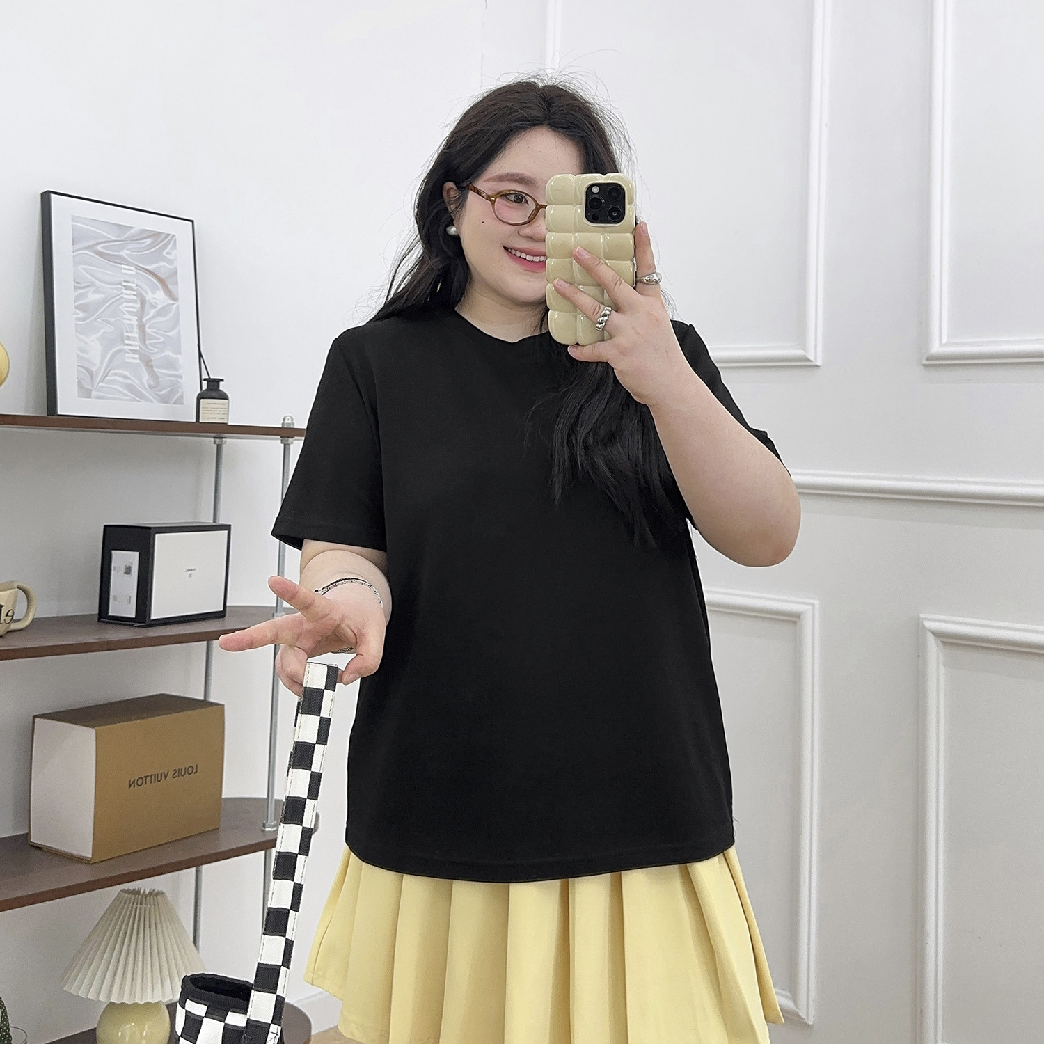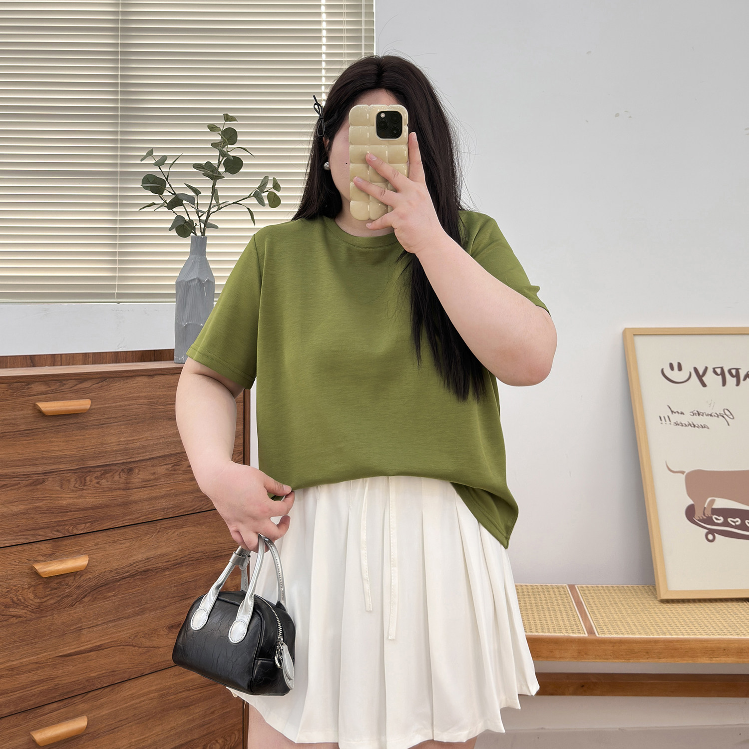 宛宛大码女装胖MM圆领T恤夏季新款宽松显瘦遮肉纯色百搭短袖上衣