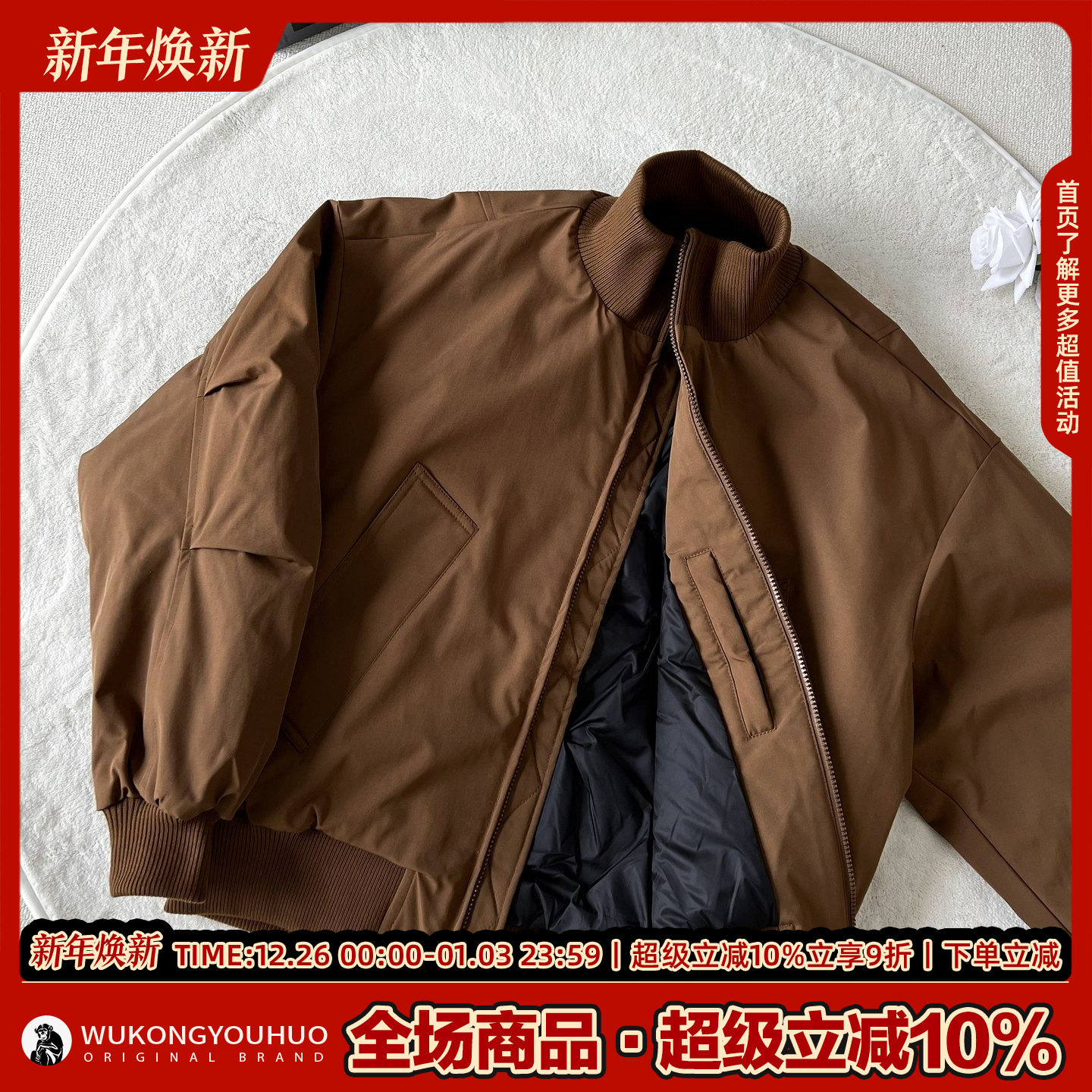 美式90白鸭绒立领廓形羽绒服男