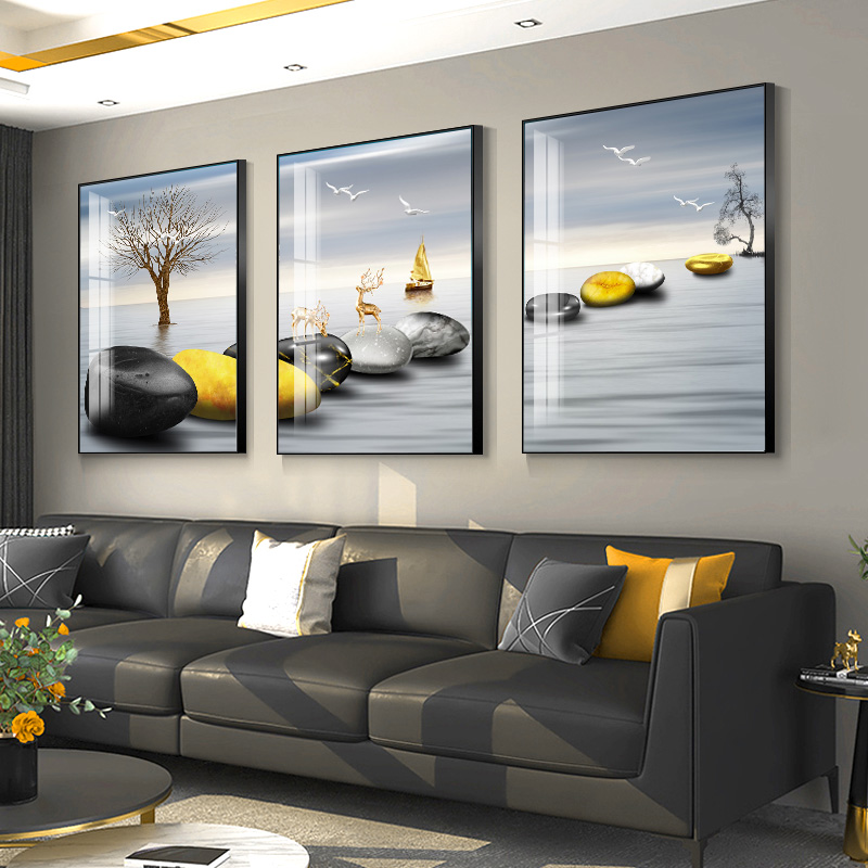 客厅装饰画高级感现代简约轻奢抽象三联画沙发背景墙高档大气挂画
