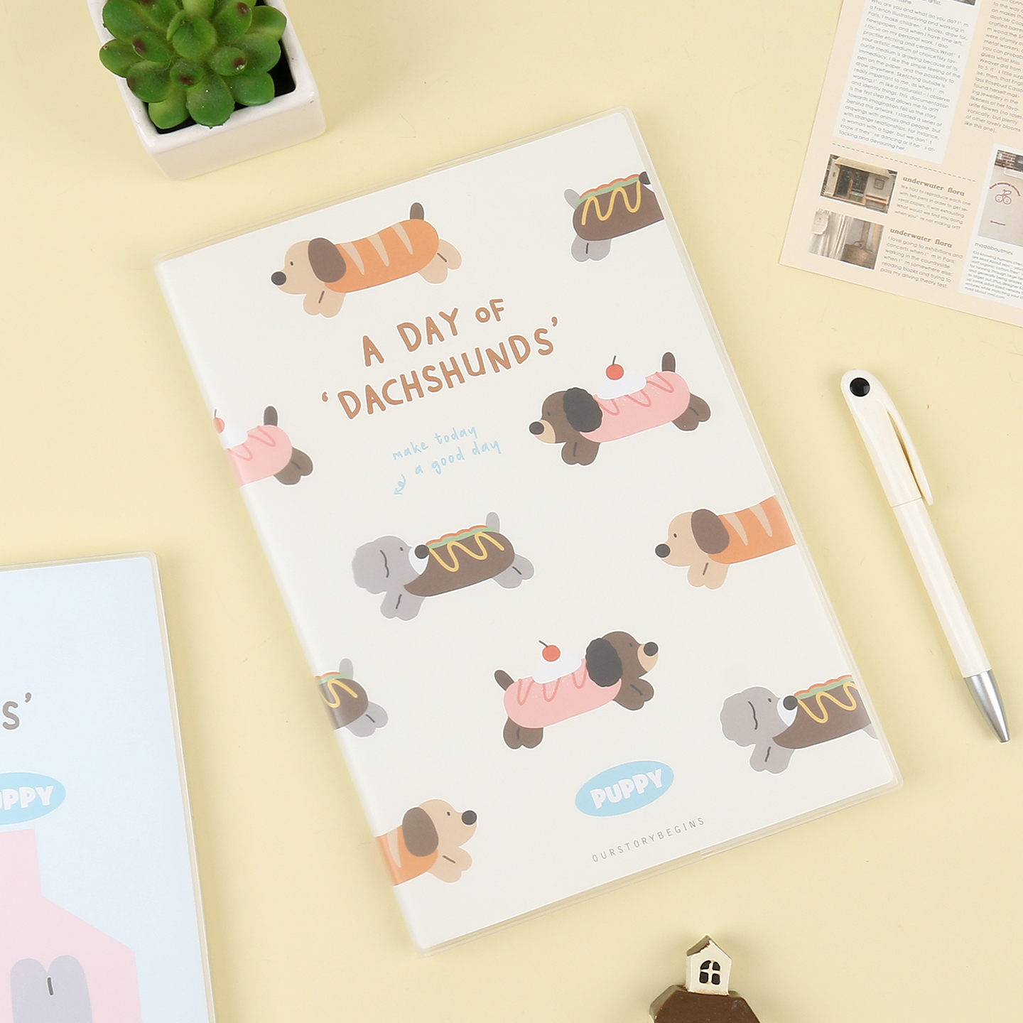 初品/快乐腊肠狗 空白内页胶套本 创意唯美可爱卡通简约小清新画涂鸦绘画本学生笔记本文具记事本日记本子B5