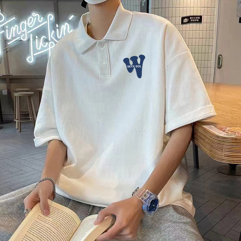 美式复古短袖polo衫男夏季潮流ins宽松百搭纯棉半袖翻领体恤上衣