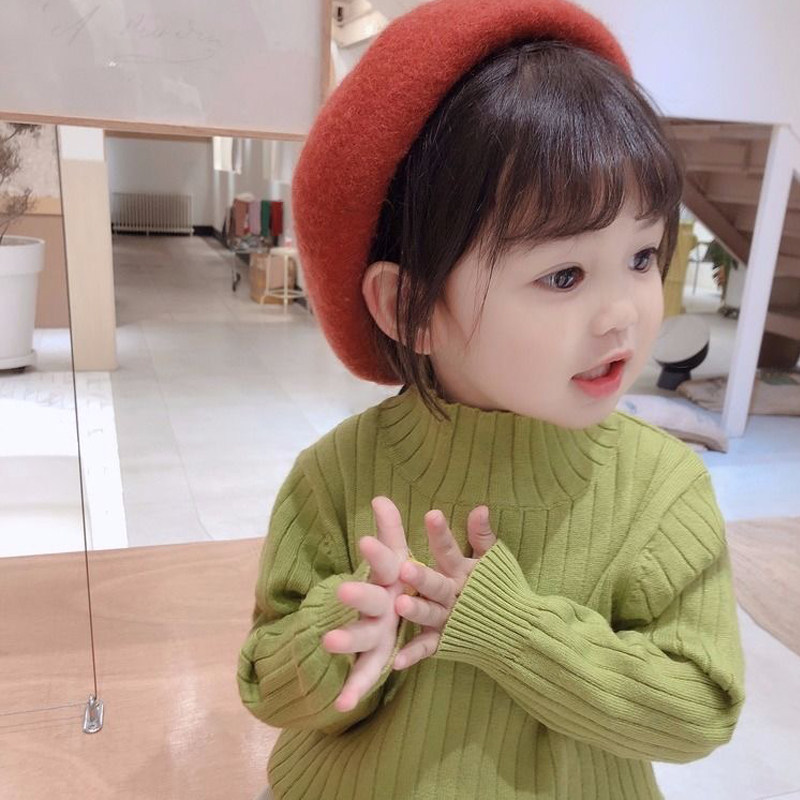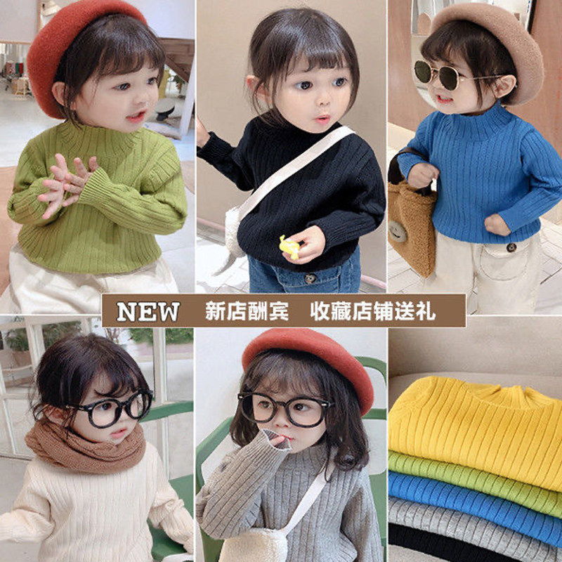 女童毛衣加绒加厚儿童秋冬韩版半高领纯色宝宝套头上衣童装打底衫