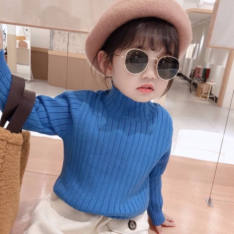 女童毛衣加绒秋冬半高领打底衫
