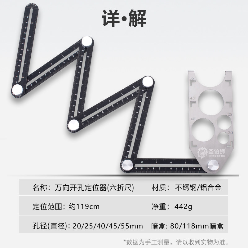 瓷砖开孔定位器六折尺多功能角度折叠尺异形取型器打孔贴瓷砖工具