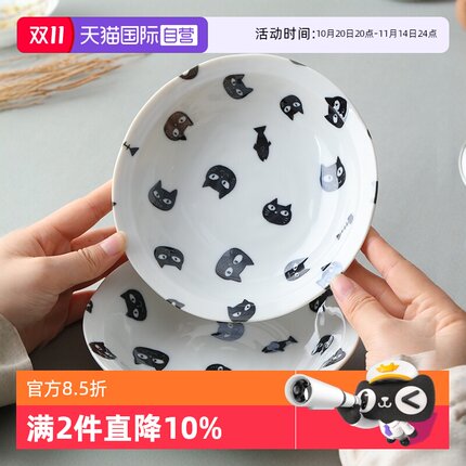 【自营】美浓烧日本进口黑猫警长深盘盘子菜盘汤盘日式家用17cm