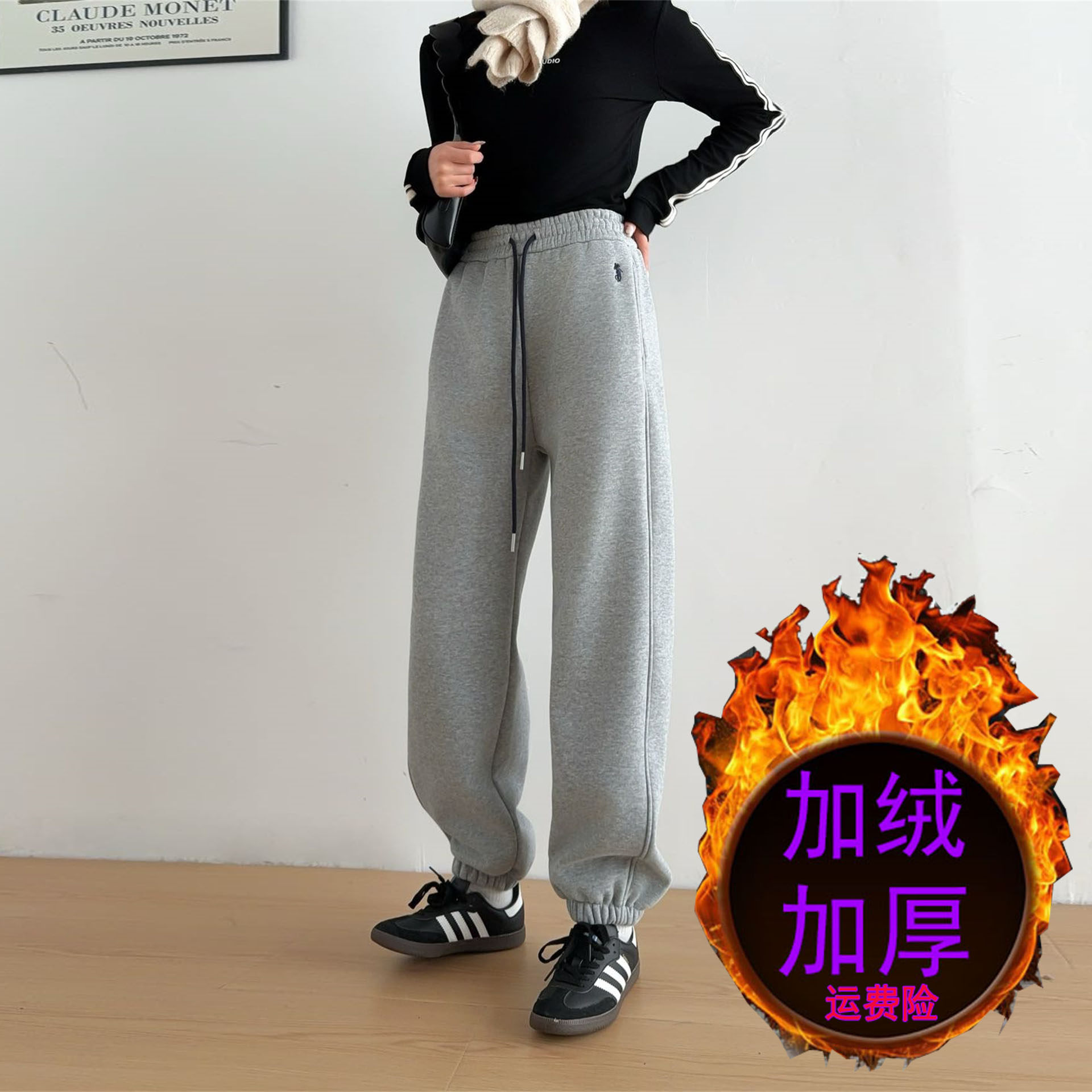 卫裤女2025新款冬休闲韩版小个子加绒加厚小马刺绣运动裤女束脚裤