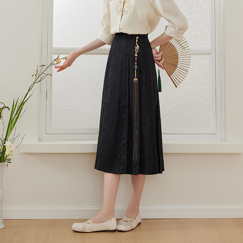 KBNE半身裙女新中式马面裙中长款2025夏季新款高腰a字裙半裙长裙