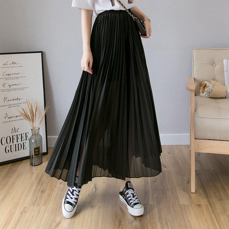 夏季薄款雪纺百褶阔腿裤女高腰垂感显瘦大码宽松裤裙九分裤裙裤子