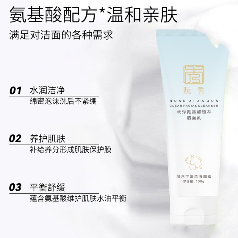 阮秀氨基酸洁面乳洗面奶绵密泡沫净爽控油水润不紧绷官方正品女男