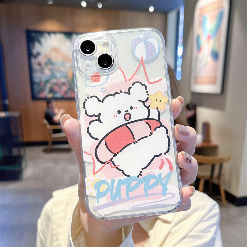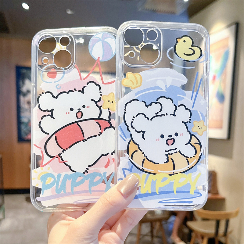 游泳圈小狗手机壳适用苹果15promax新款iphone14卡通13可爱12mini情侣11透明17/xr硅胶16防摔8plus女款7/6套
