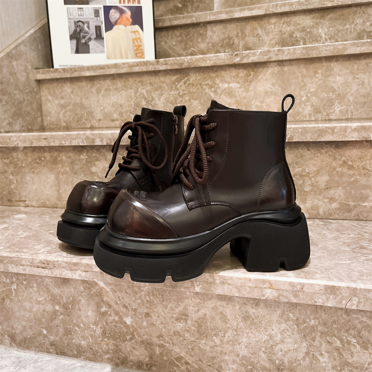 2025新款真皮厚底松糕马丁靴英伦风小个子切尔西靴机车靴加绒女鞋