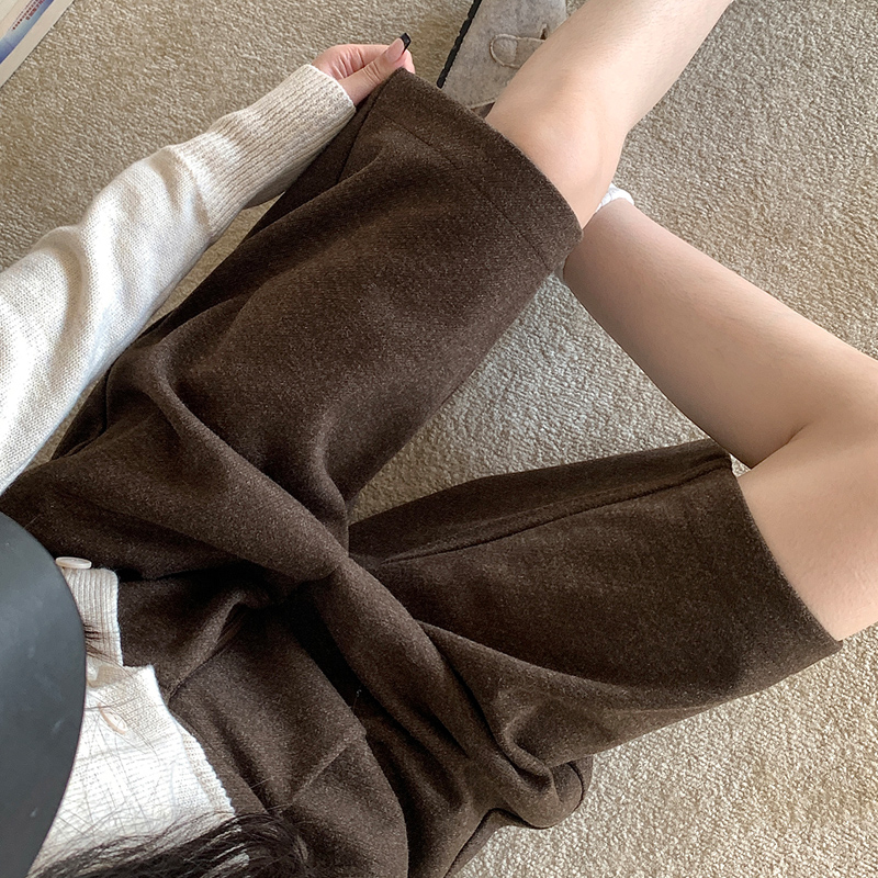 高级灰羊毛毛呢阔腿靴裤女秋冬高腰加厚美式酷辣老钱风五六分中裤
