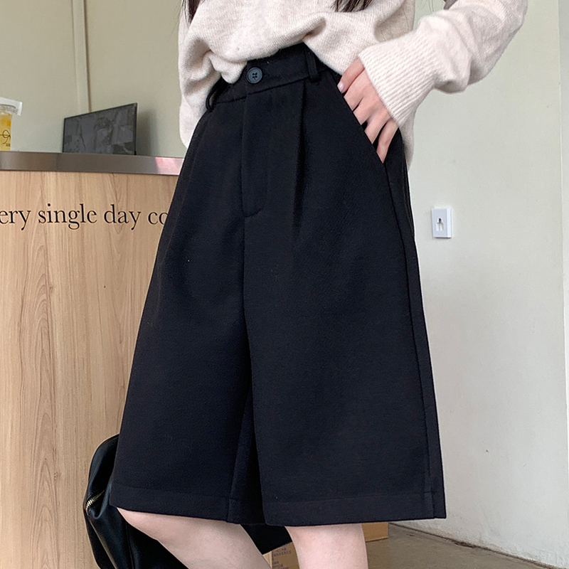 高级灰羊毛毛呢阔腿靴裤五分中裤