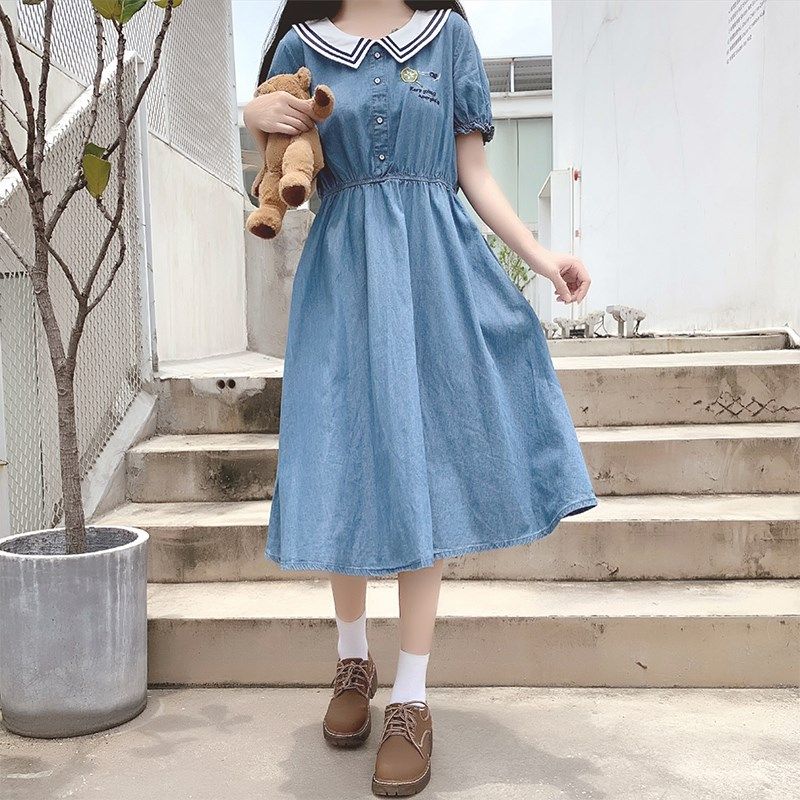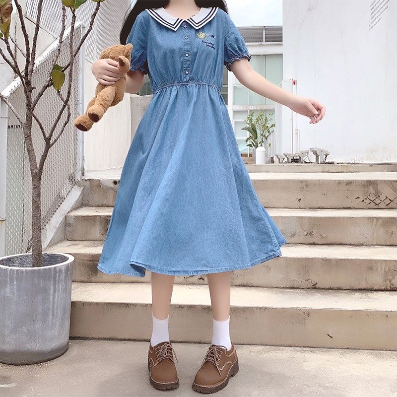 少女连衣裙学生牛仔裙大童2024夏季新款学院风显瘦初高中生裙子