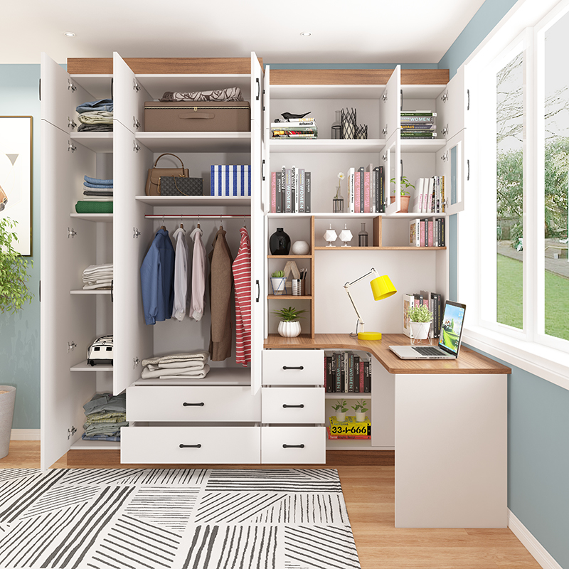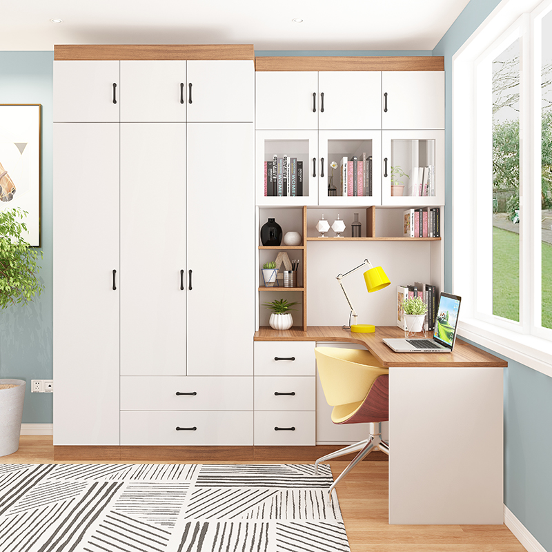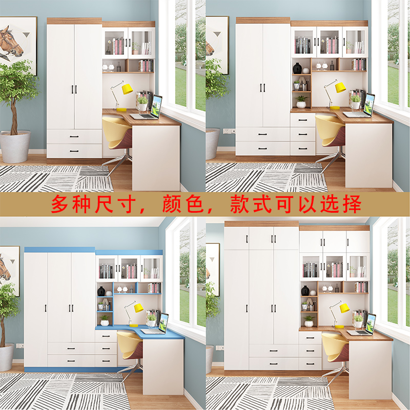 转角书柜电脑桌 儿童书桌连体组合衣柜 书架学习桌一体储物柜桌子