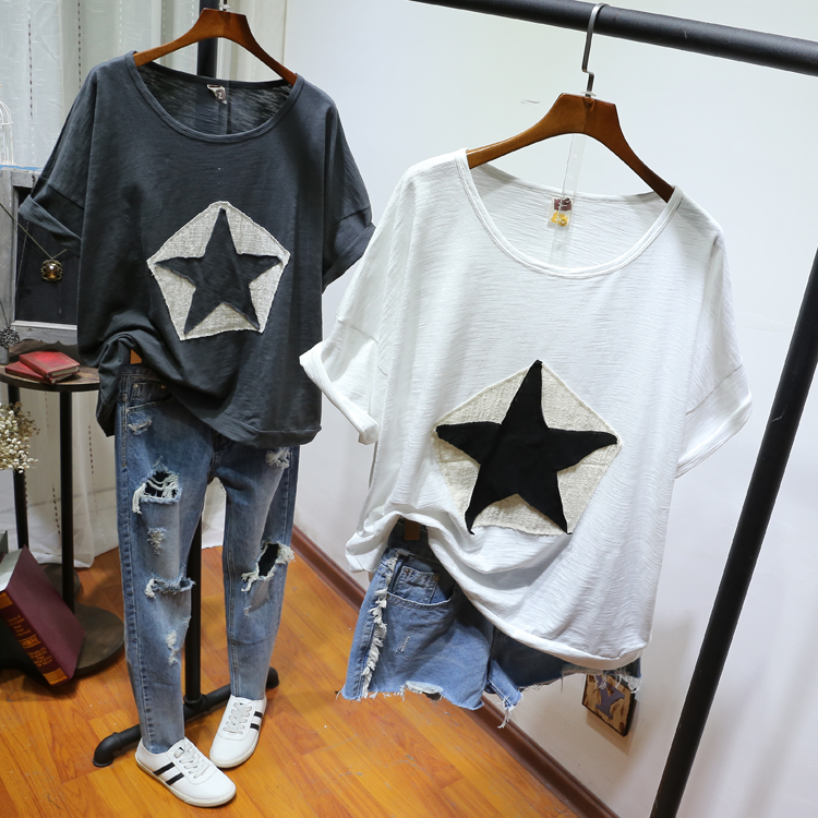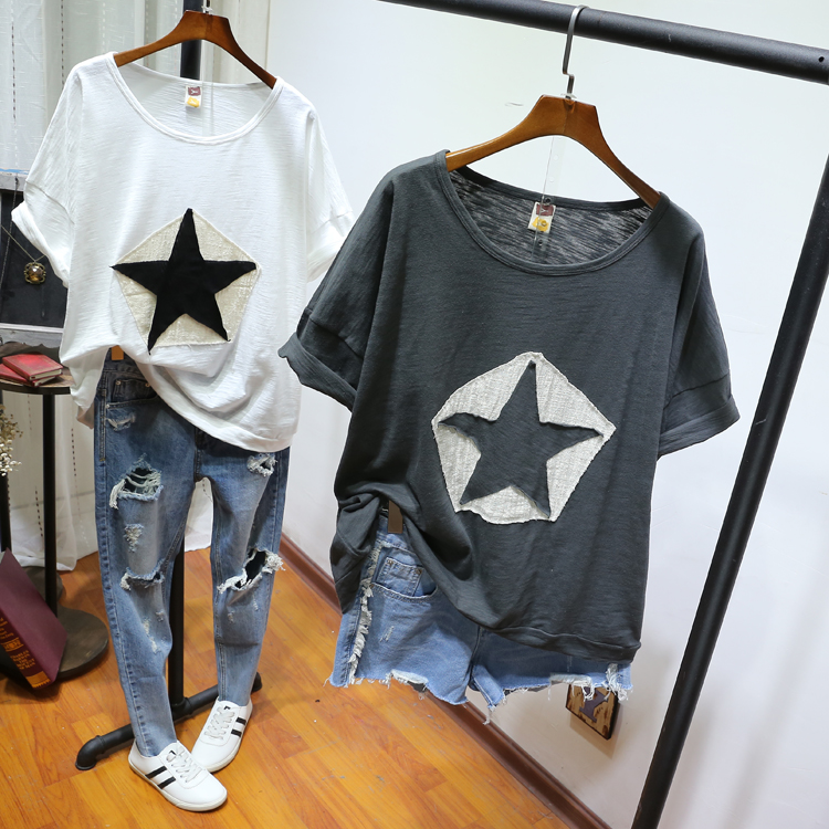 微胖女装大码T恤夏装200斤胖mm时尚短袖休闲简约韩版宽松显瘦上衣