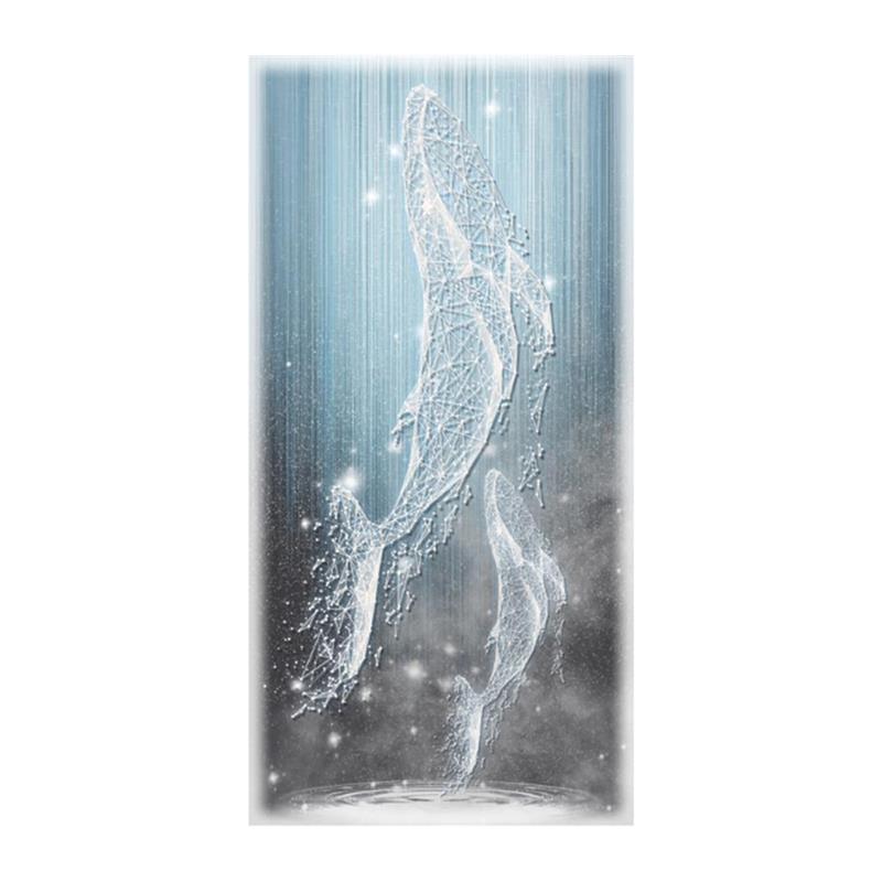 3D现代简约入户玄关装饰壁画竖版走廊过道背景墙壁纸抽象鲸鱼墙布