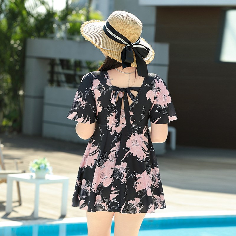 女士泳衣大码连体胖妹妹遮肚子300斤保守裙式微胖遮肉200斤泡温泉