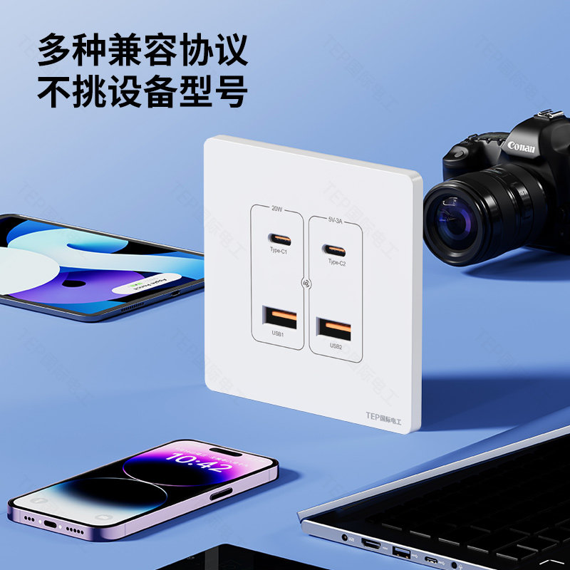 86型USB快充暗装type-c手机充电四口低压220转5伏工地36V插座面板