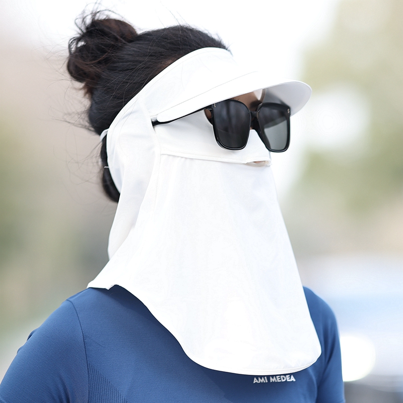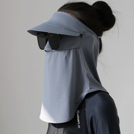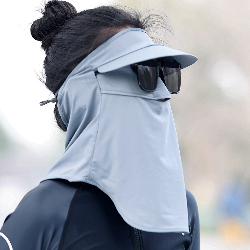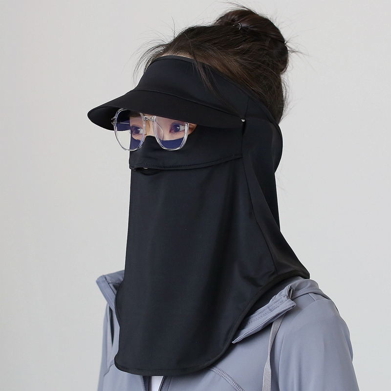 露鼻透气防晒面罩连帽檐脖子脸部耳朵全面防护骑车防紫外线眼镜孔
