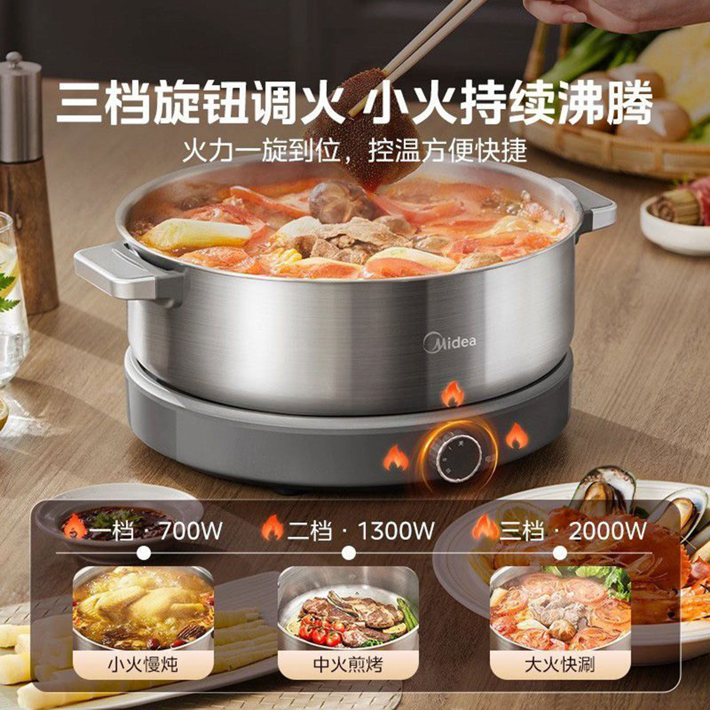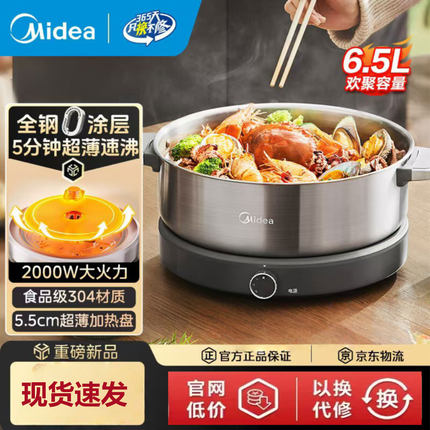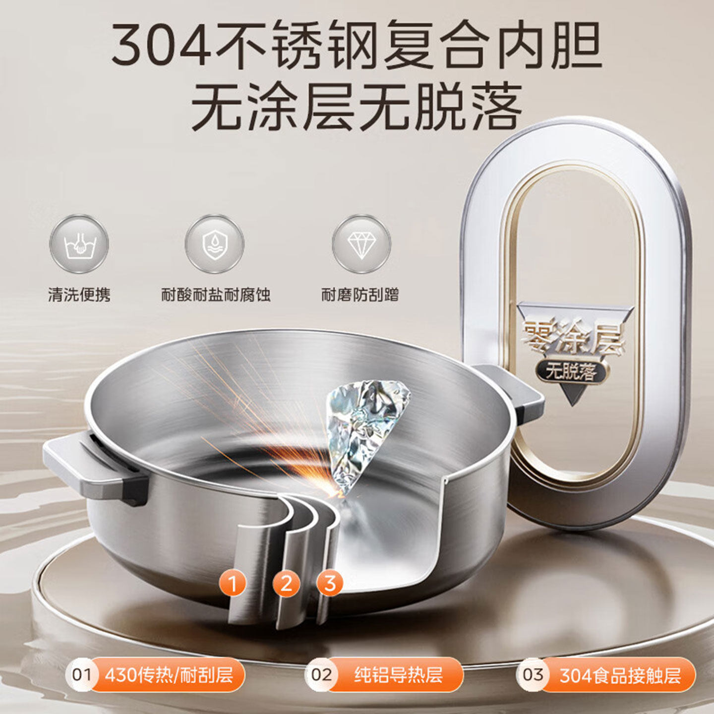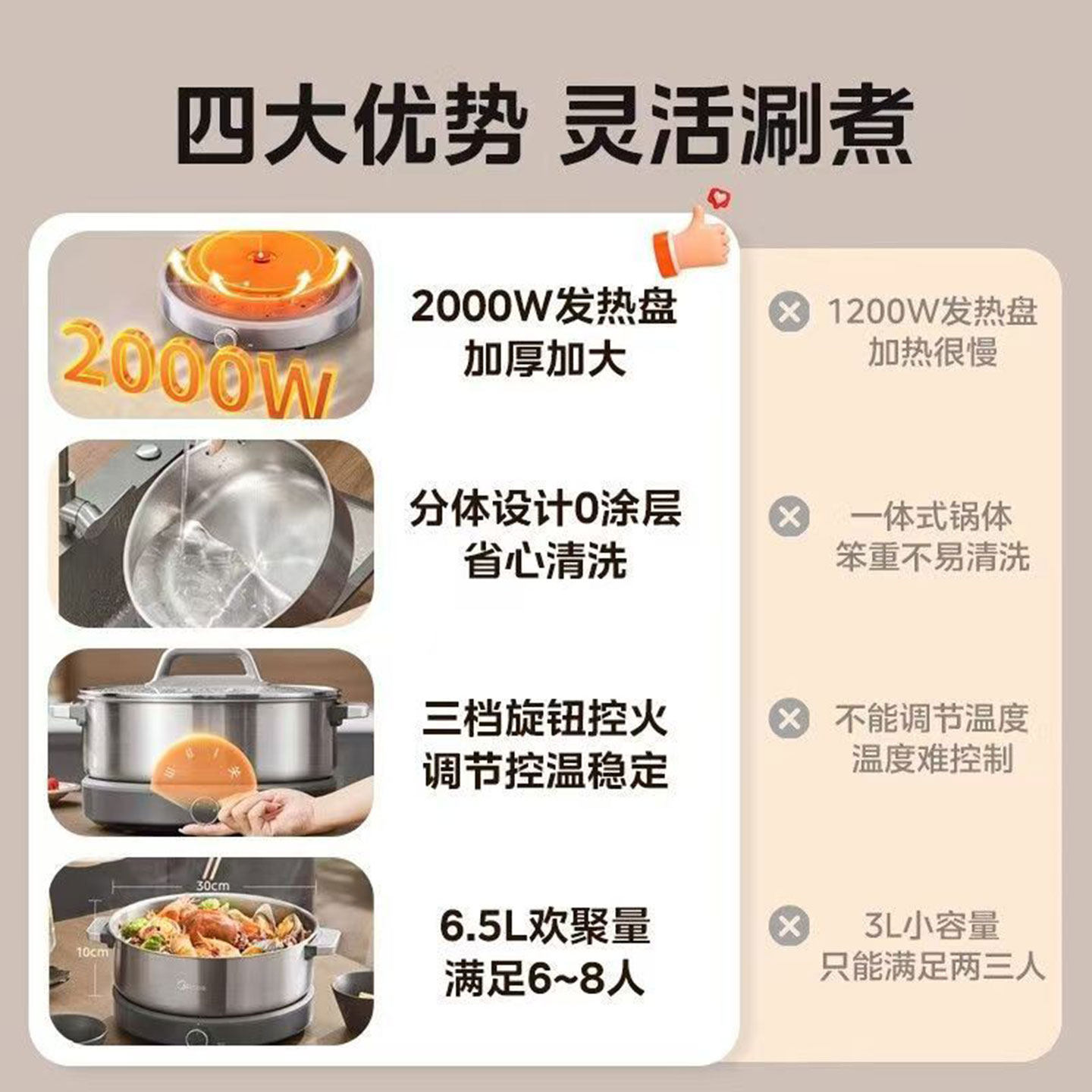 美的电火锅0涂层不锈钢分体式家用多功能新款电煮锅电炒锅HGS30G1