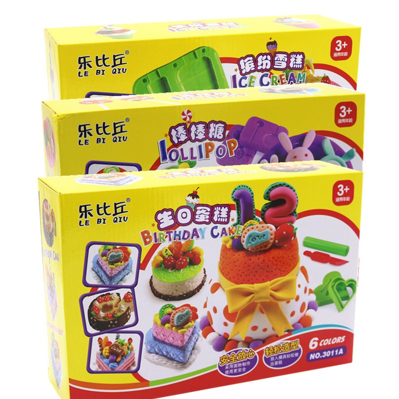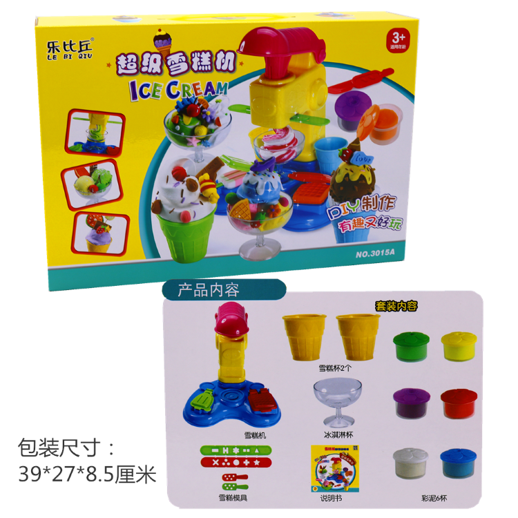 彩泥粘土面粉泥安全儿童套装手工制作模具棒棒糖雪糕机3D乐比丘