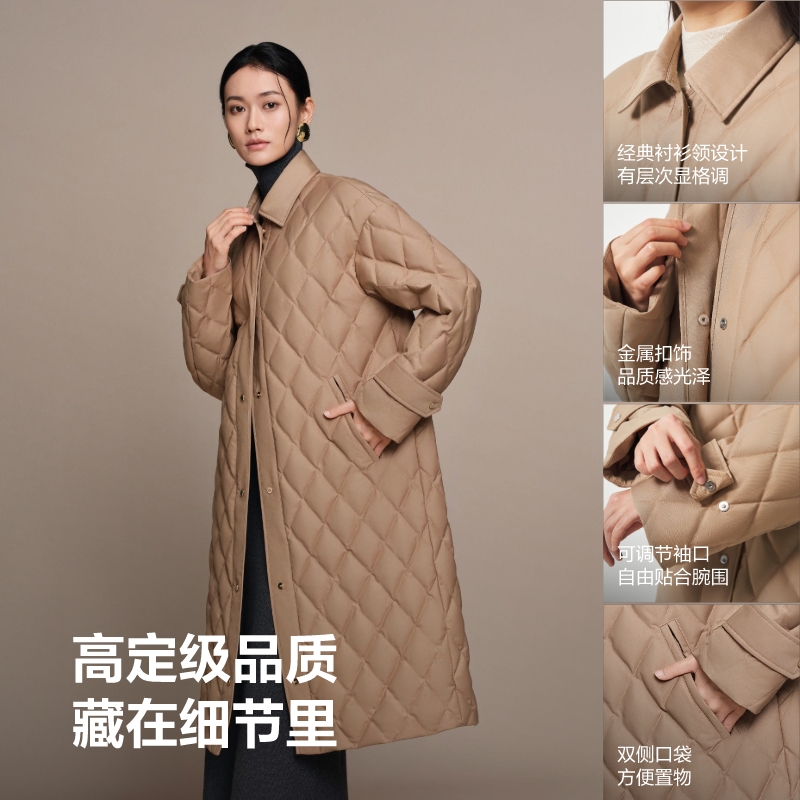 波司登2025秋季新款女士长款高智老钱风轻薄羽绒服菱格小香风外套