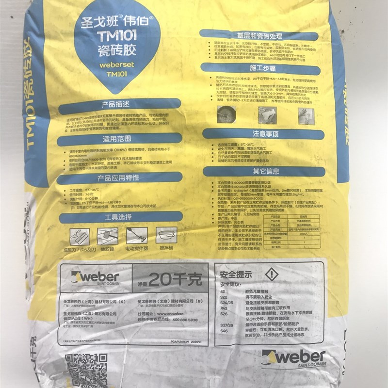 圣戈班伟伯釉面砖粘结剂瓷砖粘合剂 20kg灰色装修瓷砖专用瓷砖胶